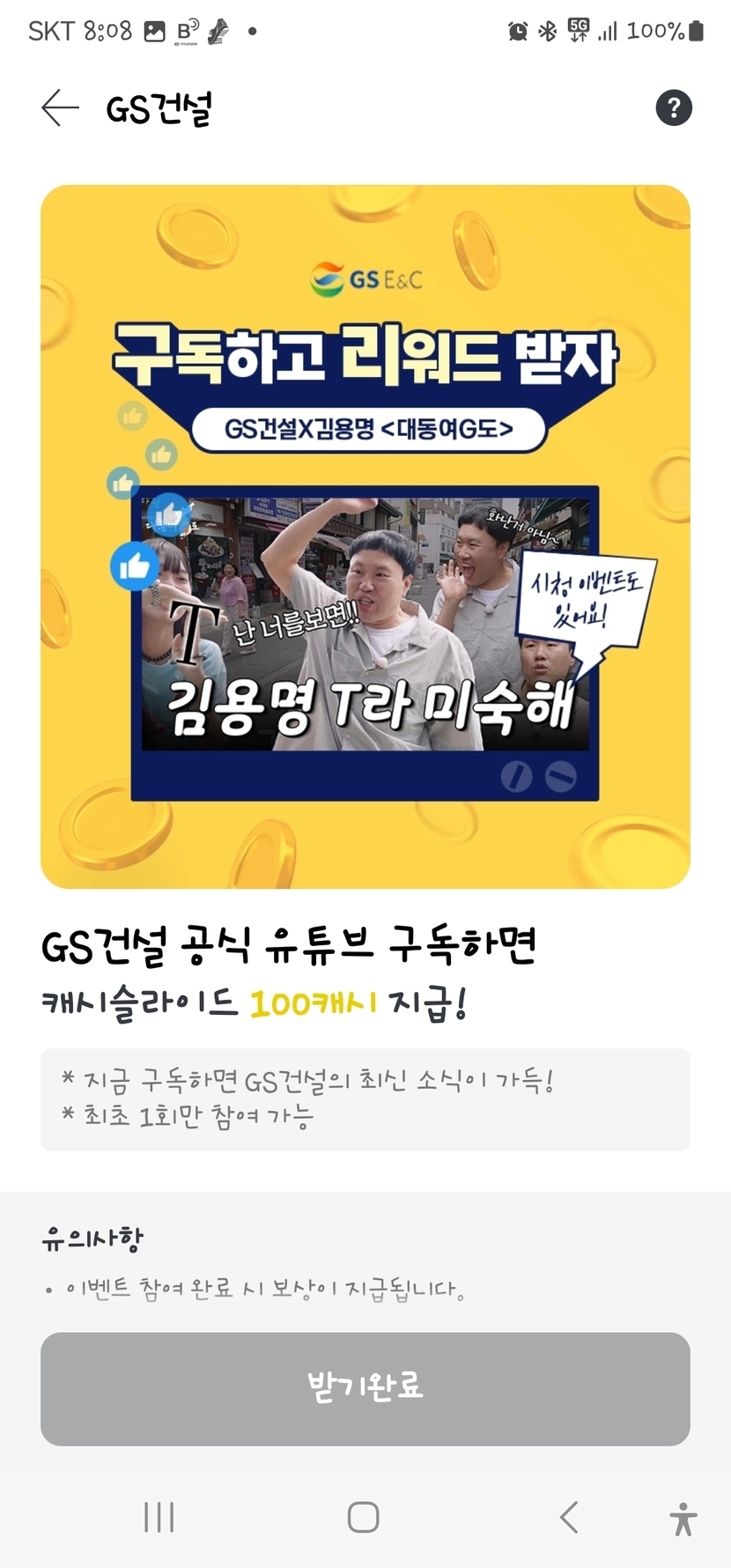 지금 100캐시~~ 있어요