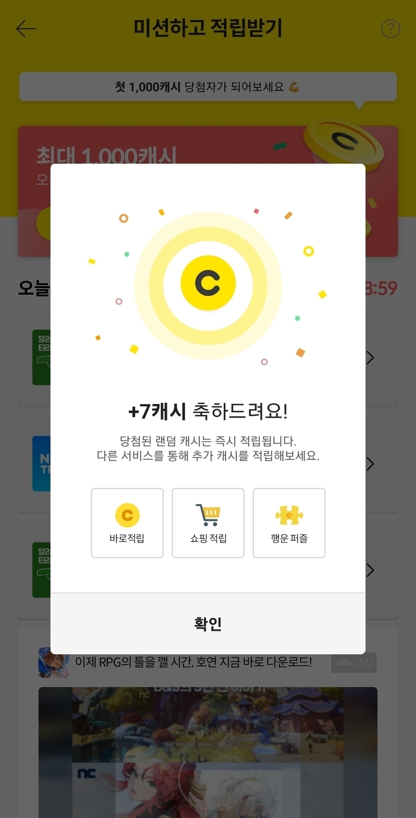 7캐시 됐어요~^^