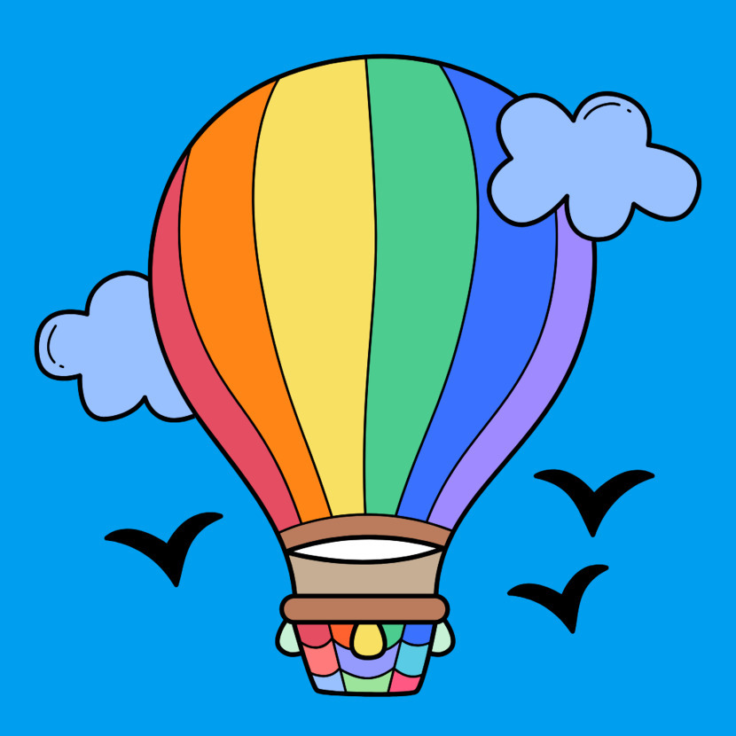 하늘에 떠 있는 새와 무지개 열기구❤️