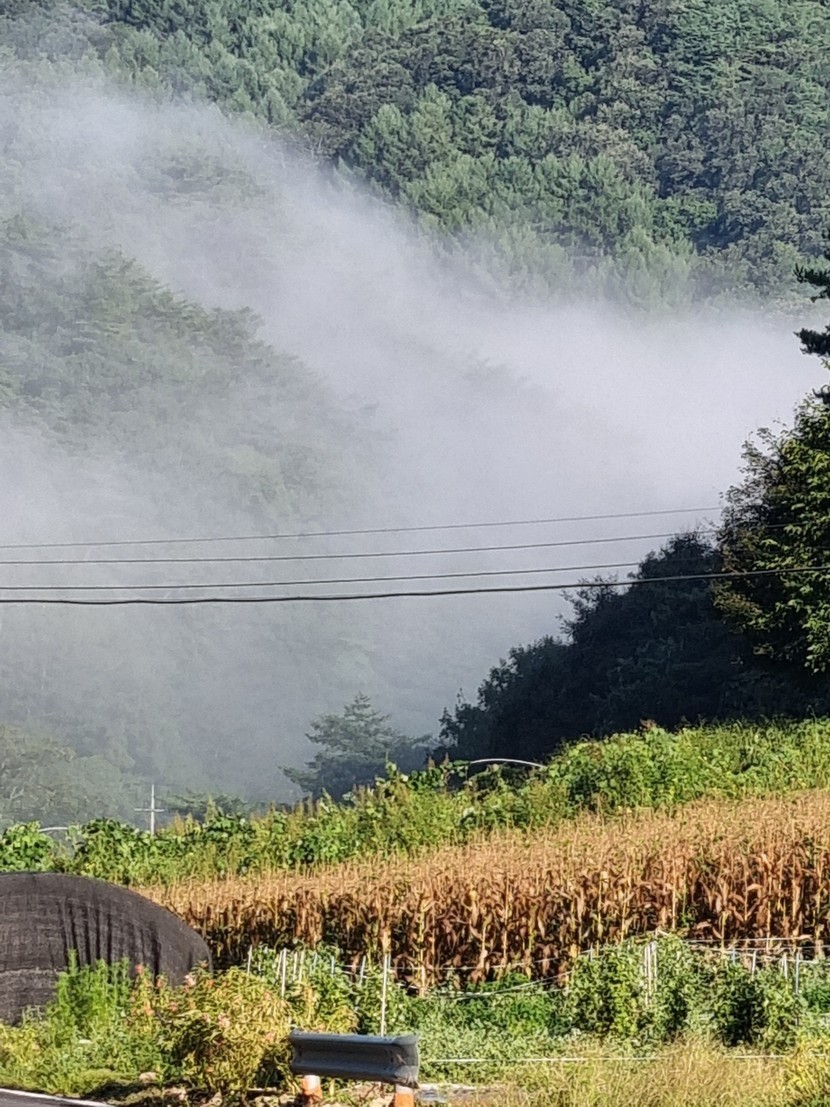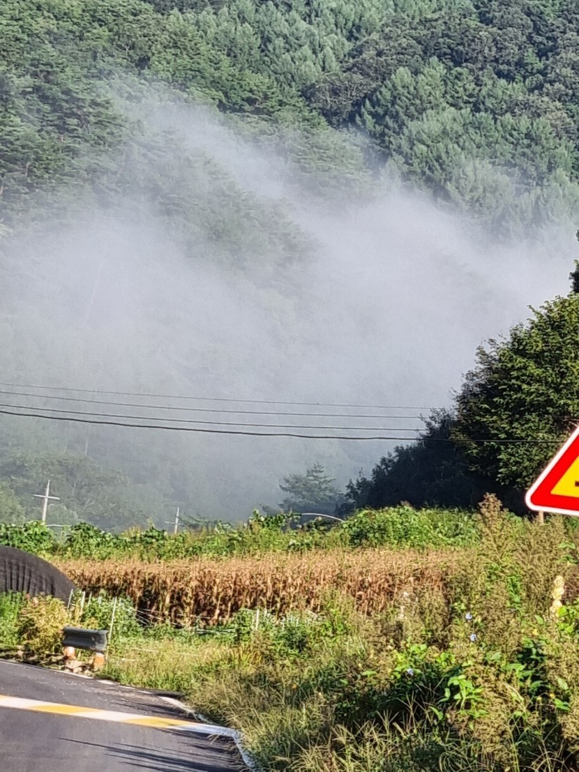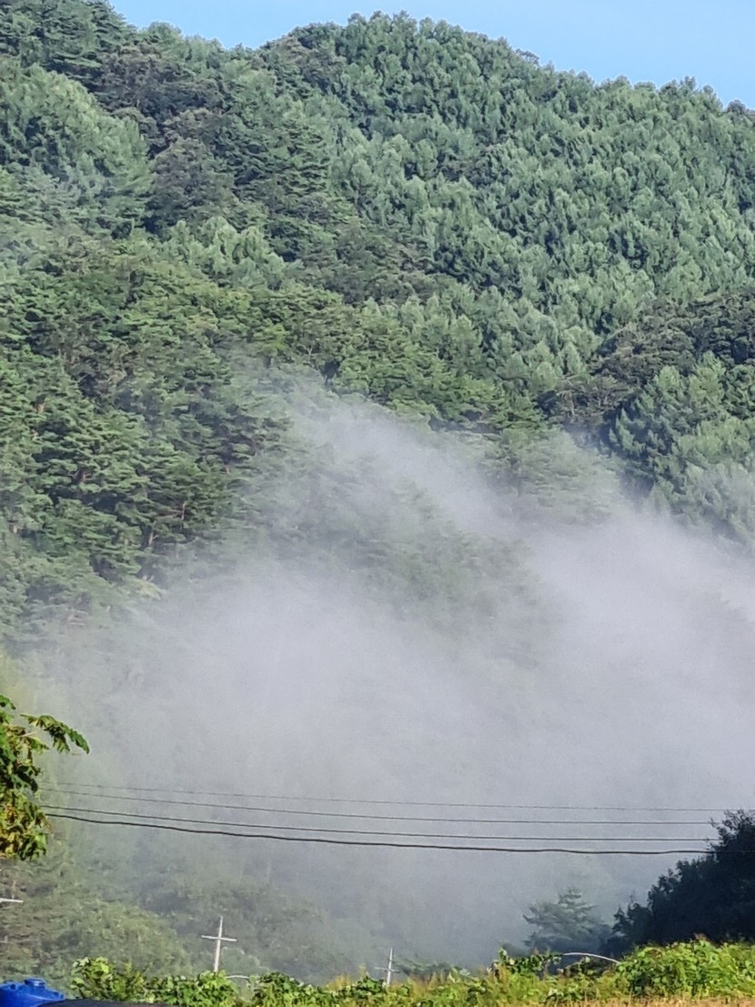 산자락에서 피어나는 안개가 너무 멋있어요