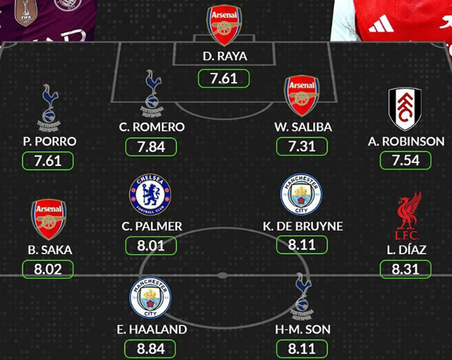 프리미어리그 월간 베스트11 공격수에는 손흥민(토트넘)과 홀란드(맨시티)가 이름을 올렸다. 측면 공격수로는 디아스(리버풀)와 사카(아스날)가 선정됐고 미드필더진은 더 브라위너(맨시티)와 팔머(첼시)가 구축했다. 수비진에는 로빈슨(풀럼), 살리바(아스날), 로메로(토트넘), 포로(토트넘)가 포진했고 골키퍼에는 라야(아스날)가 선정됐다.