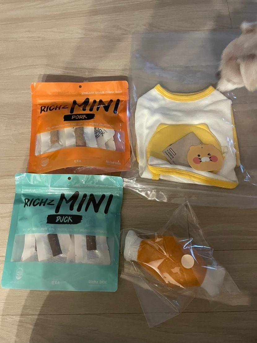 그리고 다음 날 만나서 저렇게 간식에 옷에 장난감까지 주셨다고 하네요