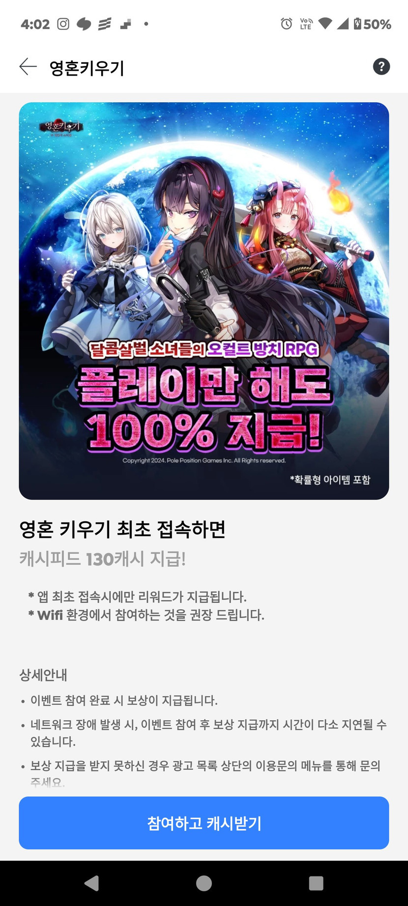 영혼키우기 최초 접속 적립 받으세요~