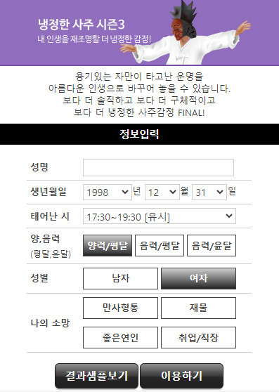 '냉철한 사주 시즌3'에서는 사주구성도와 함께 유년시절부터 노후까지 그리고 팔자 좋아지는 개운과 부적도 모두 다루고 있다.