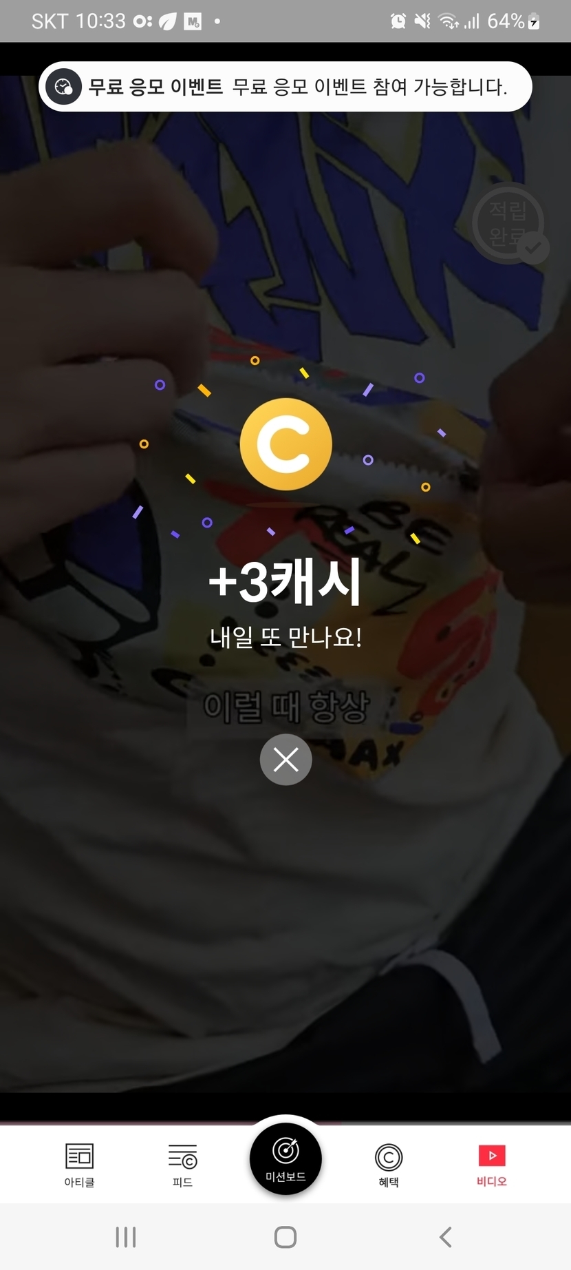 24.09.12 91 읽음 랜덤캐시,미션보드 미션완료!! swsion1078(답방) 구독하기 19 19 콘텐츠의 수익 2 9월12일 랜덤캐시 미션완료 7캐시, 미션보드 미션완료 3캐시, 타로카드는 5캐시, 비디오시청은 3캐시 받았어요. 19 0 / 300 입력