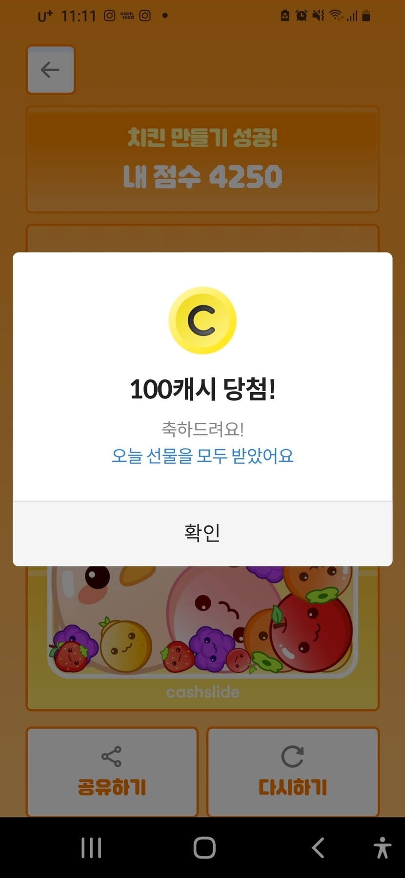 4,250점 치킨성공