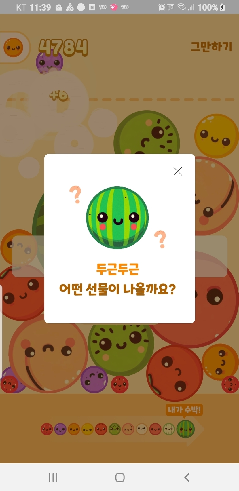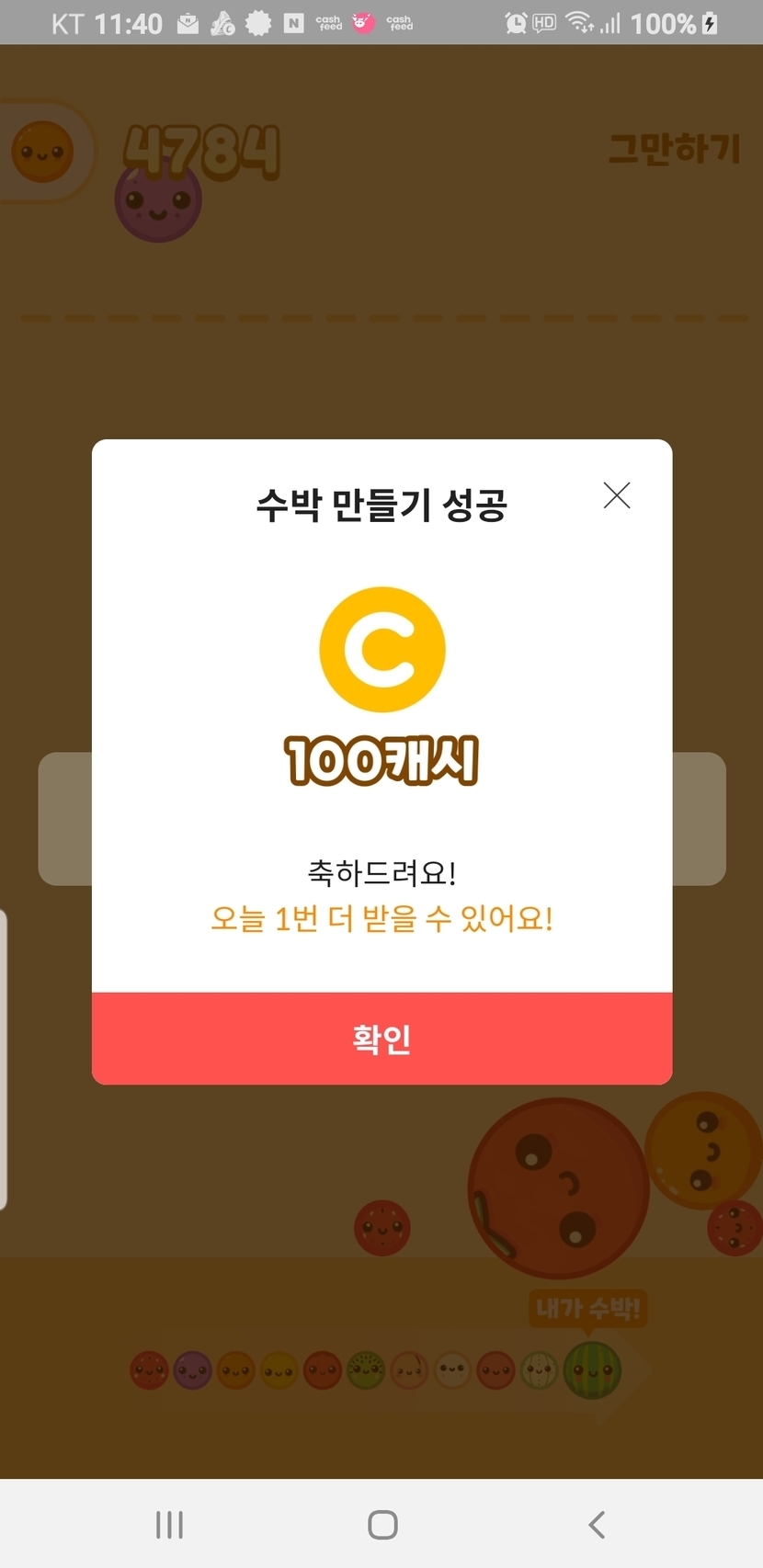 1️⃣0️⃣0️⃣💰💰도전 수련 중🍉 4,784점 달성