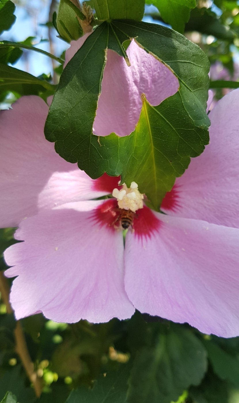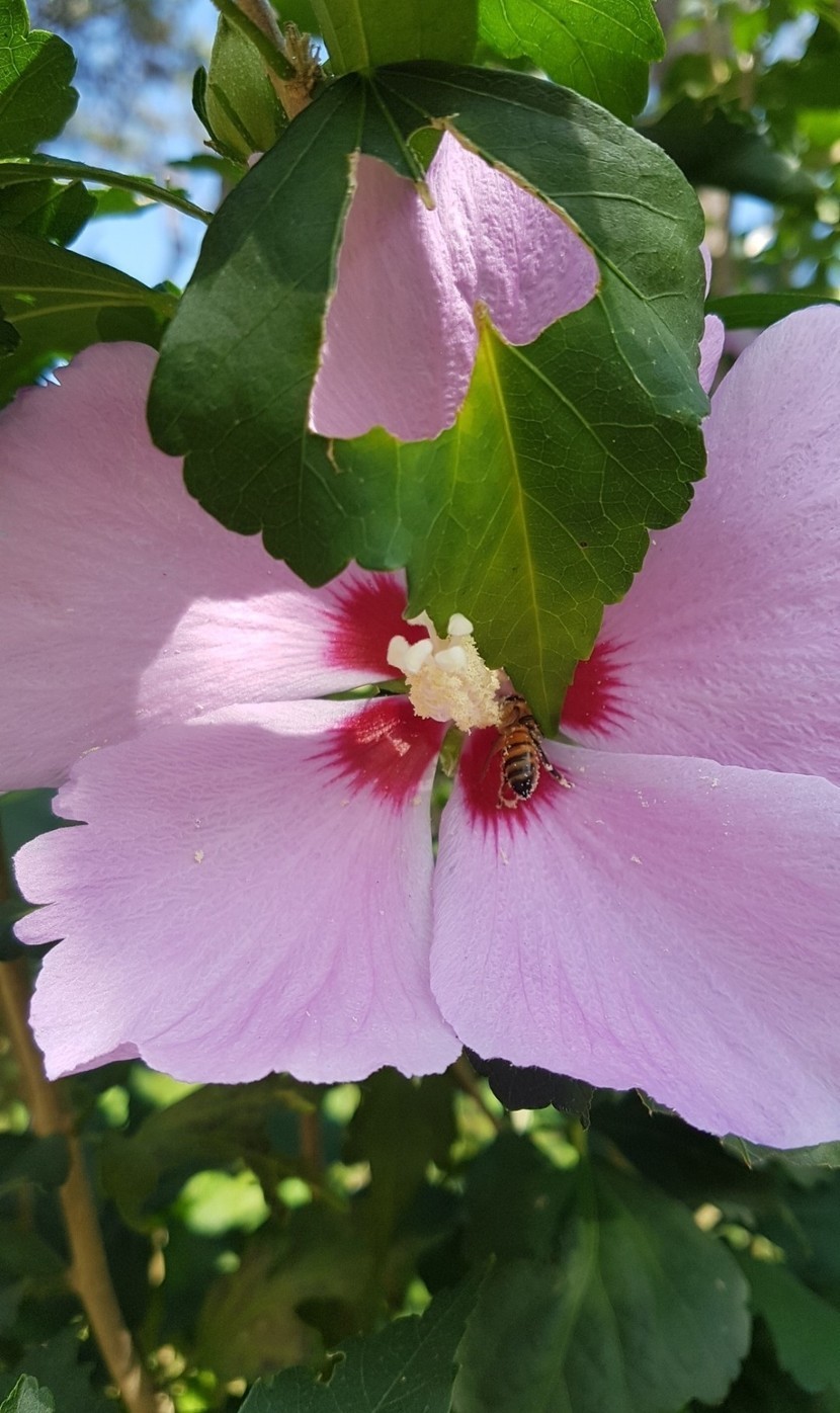 무궁화 꽃에서 꿀빠는 벌😄