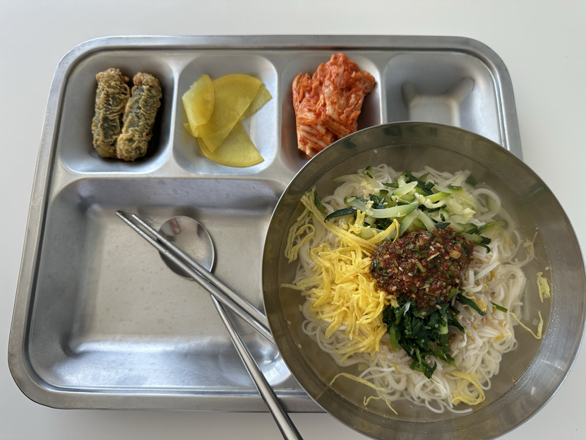 잔치국수, 김말이튀김, 단무지
