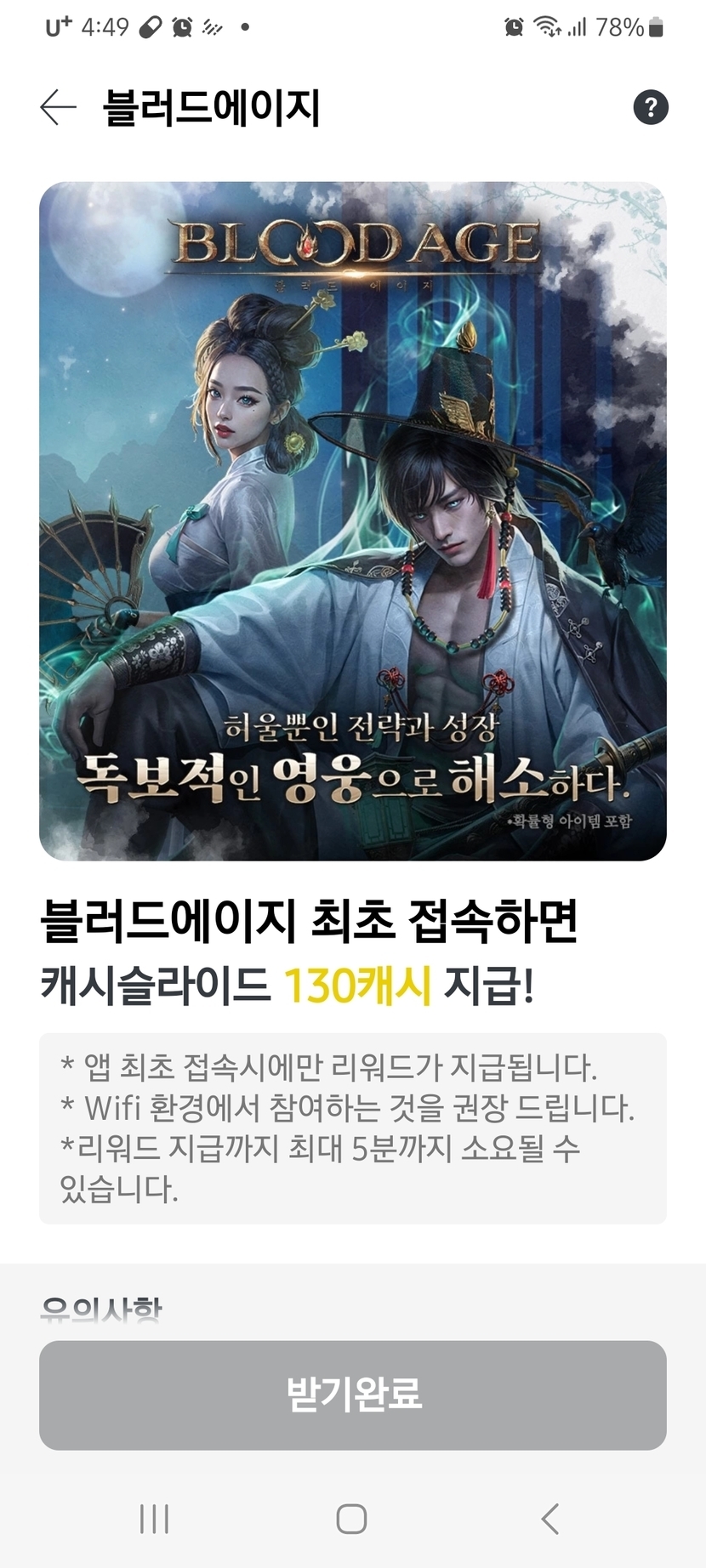 블러드에이지. 최초 접속하고 130캐시[04시]