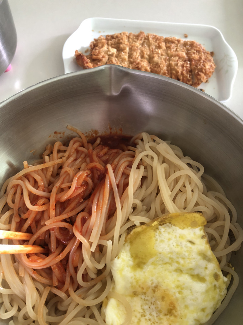 쫄면에 돈가스