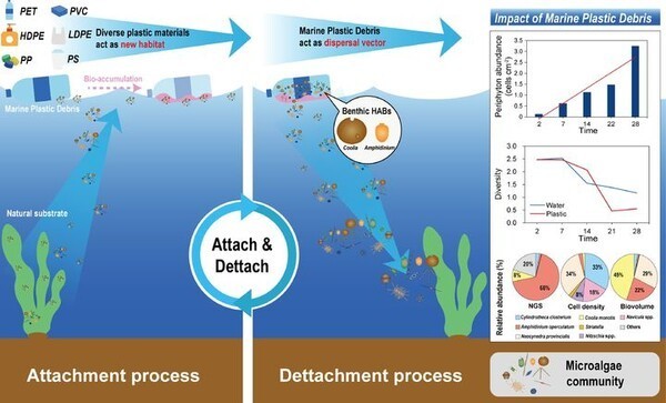 아울러 이번 연구 결과에 따라 열대·아열대 바다에 사는 저서성 와편모조류가 플라스틱을 인공 서식처로 활용해 플라스틱의 입자를 매개체로 해류에 편승, 우리 바다로까지 유입될 수 있다는 것이 드러났다.