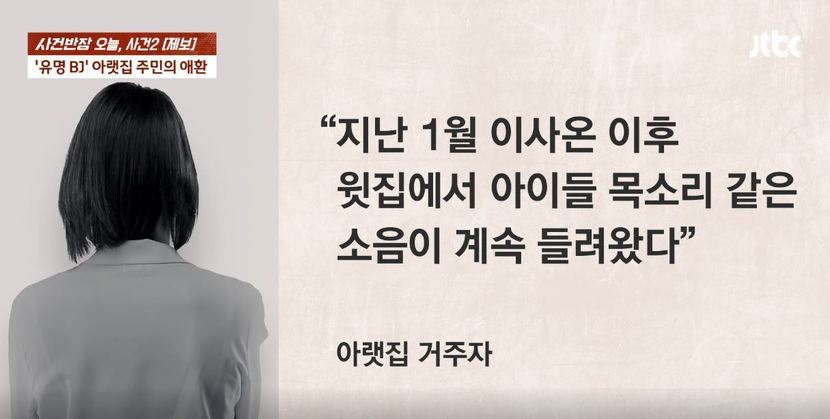 이에 A 씨는 '조용히 해달라'는 내용의 쪽지를 남기며 윗집에 배려를 요청했지만 소음은 개선되지 않았다. 결국 A 씨는 경찰에 신고했으나 경찰 조사 결과 윗집에는 아이들이 아닌 여성 BJ 두 명이 거주하며 방송을 진행하고 있다는 사실이 밝혀졌다.