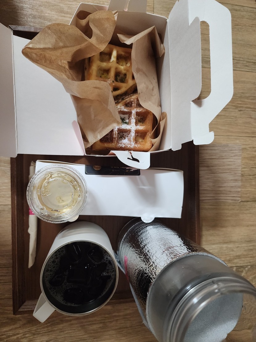 동네맛집 배달로 와플과 콜드브루 받음