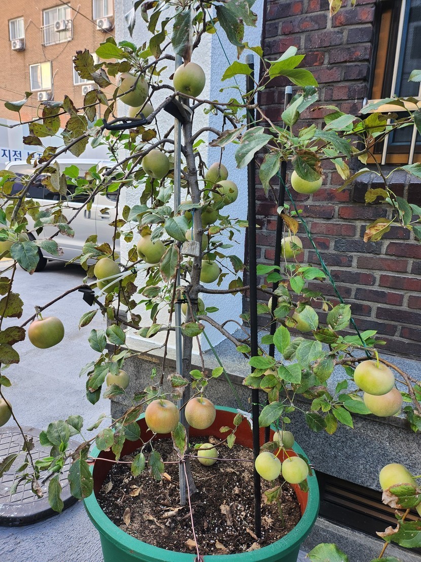 화분에서도 잘 크는 사과네요