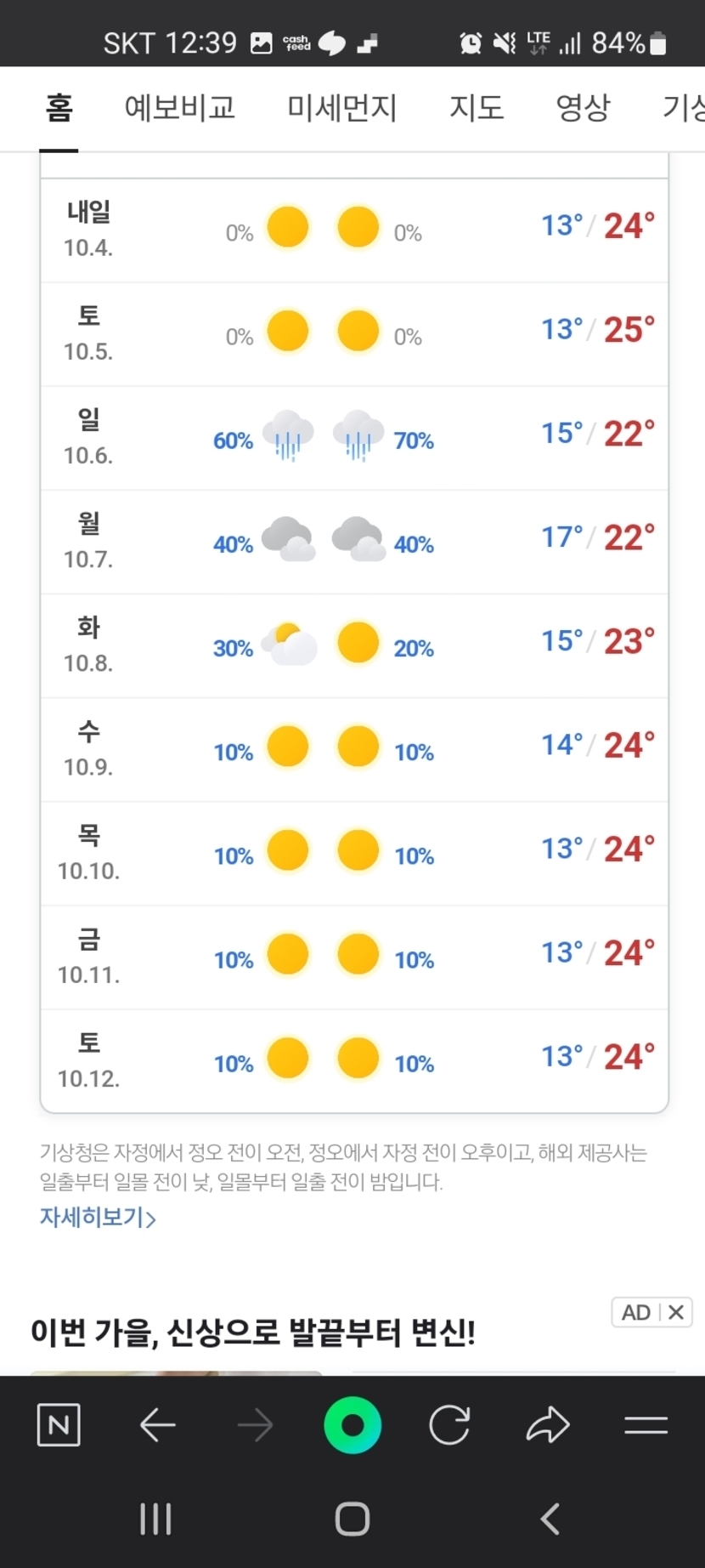 2024년10월3일목요일 청주날씨