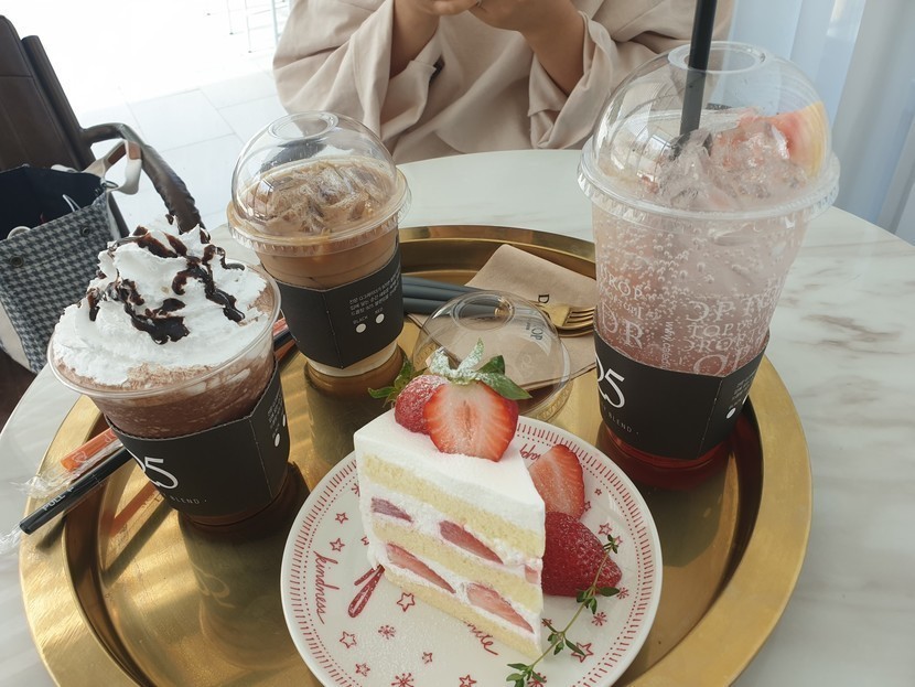 시원한 자몽에이드에 딸기케이크~