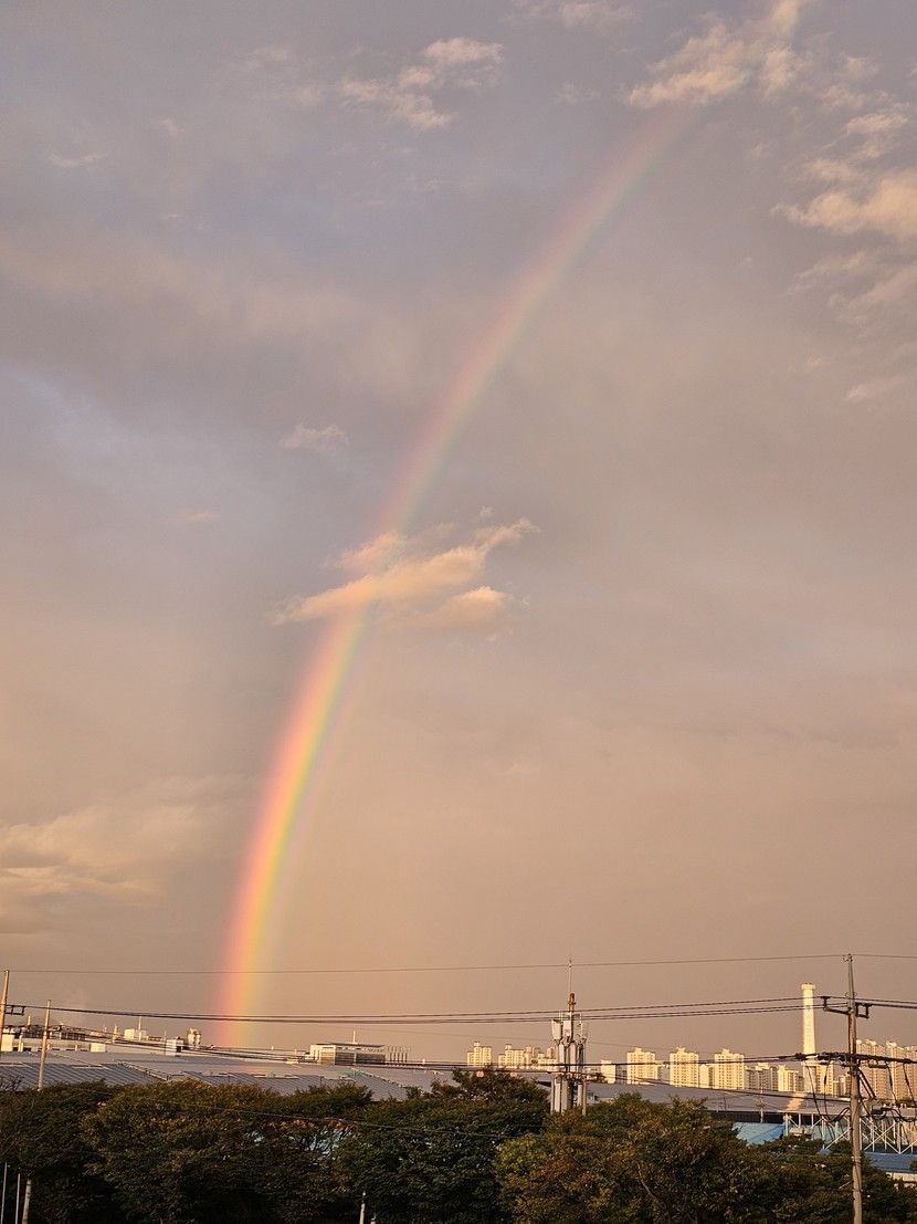 회사 출근해 찍은 무지개 사진