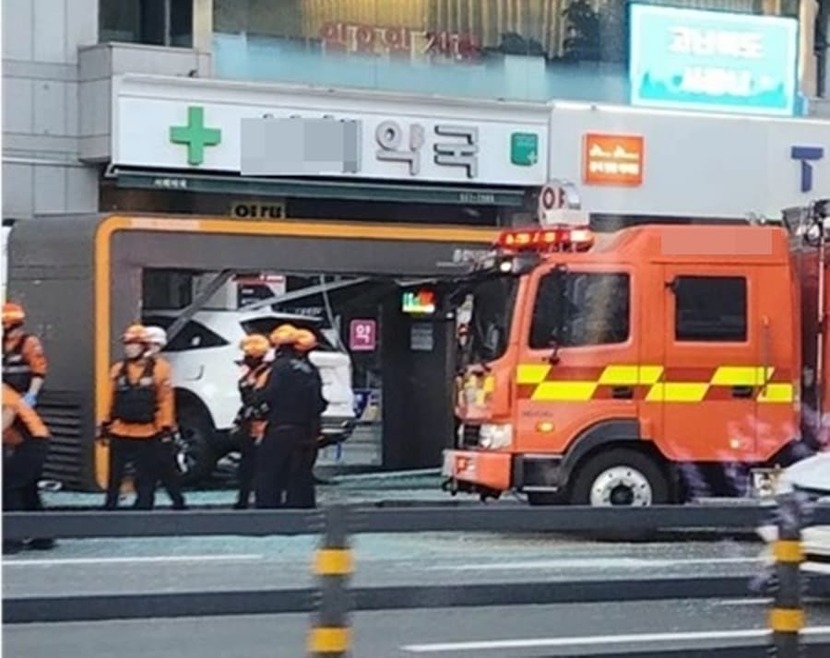 현장 초토화…오늘(4일) 출근길 버스정류장 돌진한 SUV, 2명 중경상