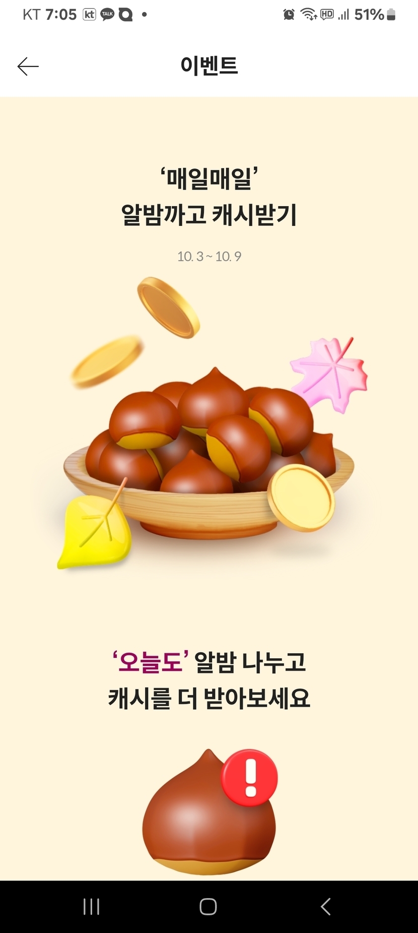 24.10.06 257 읽음 알밤 함께 까실 분을 찾습니다 aesook2185(답방감) 구독하기 86 75 콘텐츠의 수익 11 알밤 함께 까실 분!!!![캐시슬라이드 스텝업]캐시가 든 알밤을 받았어요💰오늘은 또 얼마가 나올까요?https://abr.ge/rjjm6g 75 0 / 300 입력