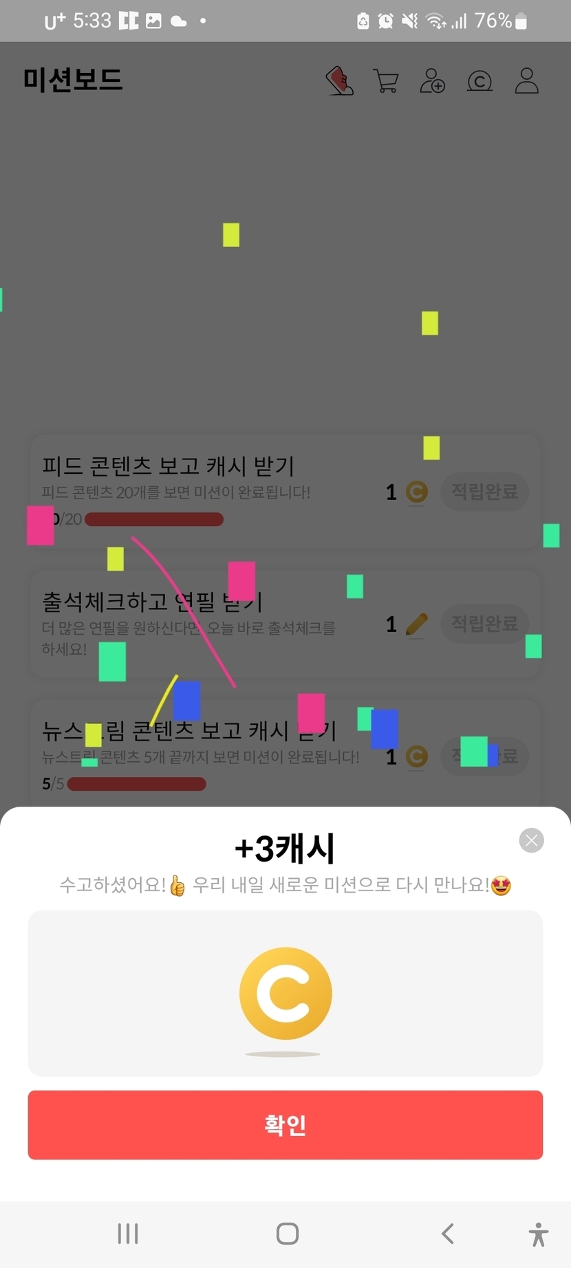 오늘의 미션완료