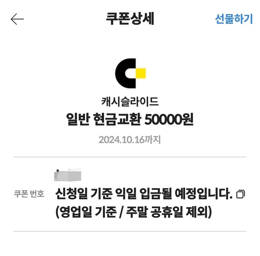 캐시 인출 신청