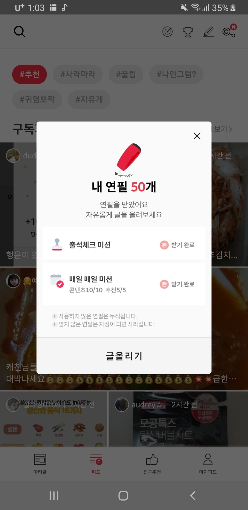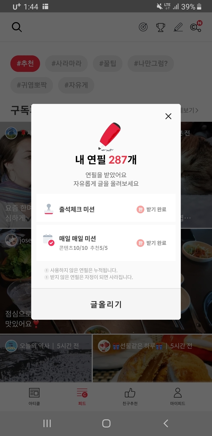 20.05.31 171 읽음 오늘이면 마지막인 콕기능😢 anstpwhd9 구독하기 2 6 콘텐츠의 수익 7 3일전부터 소식듣고나서 쭉 콕하고 연필 많이 쓰고캐시 좀 벌었습니다😇 연필많은분들 오늘까지이니 끝까지 콕해서 잘줄여나가시구 화이팅해요 6 0 / 300 입력