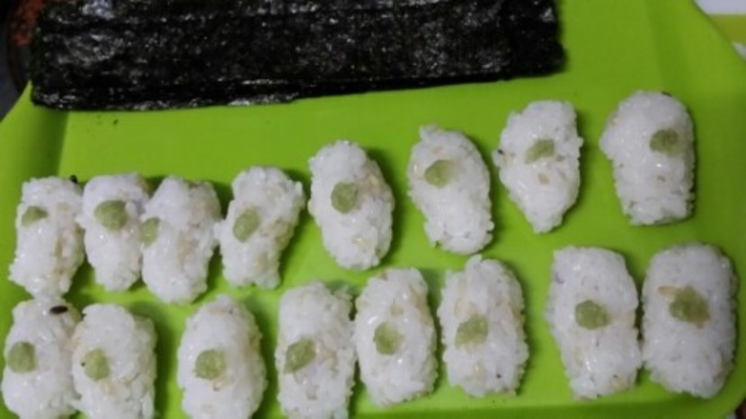 그리곤 밥을 예쁘게 쥐어서 와사비를 올려줍니다