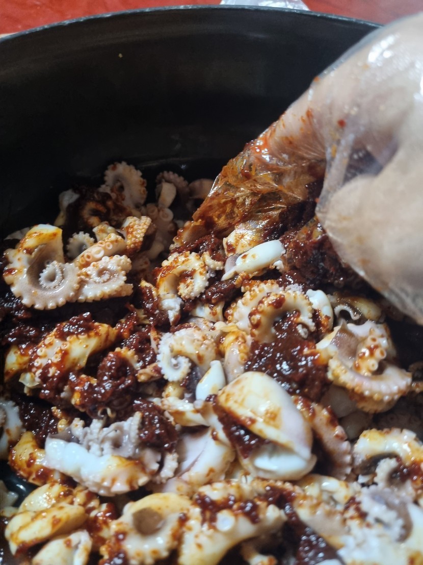 24.10.13 366 읽음 잡은 쭈꾸미요리 열심히 살자 구독하기 47 55 콘텐츠의 수익 9 내장 손질후 살짝데쳐서 자른후갖은 양녕섞어서버무려 좀재워두기쭈꾸미볶음 완성 55 0 / 300 입력