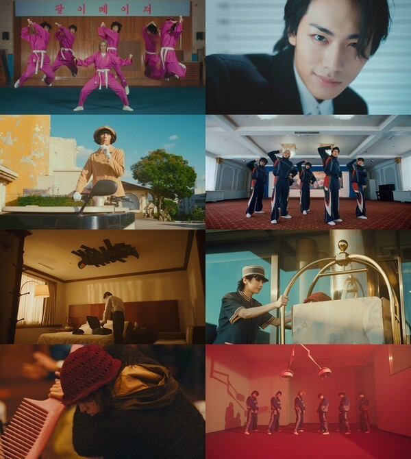 특히 뮤직비디오에서 82메이저는 벨보이, 파일럿, 요리사, 홈리스 등 다양한 신분으로 변신해 미션을 수행하는 모습으로 눈길을 사로잡았다. 비밀 요원이 된 여섯 멤버들은 차력부터 무술 등 훈련을 받은 후 잠복 임무로 빌런을 처치해 보는 이들에게 짜릿한 카타르시스를 선사했다.