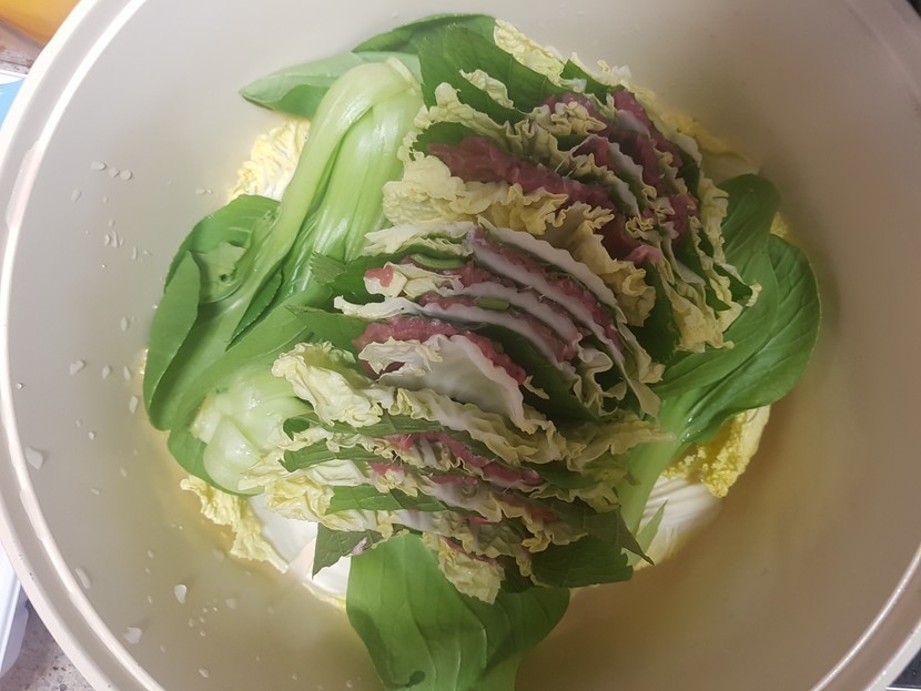 20.05.31 161 읽음 아내가 사랑으로 해준 밀푀유나베 kkuk0276 구독하기 3 21 콘텐츠의 수익 11 아내가 정성스럽게 만들어준 밀푀유나베 넘 고마워서 자랑합니다먼저 채소들을 씻고 먹기좋게 손질합니다맛있는 소고기도 샤브용으로 준비앙배추 깻잎 소고기 순으로 쌓고 커다란 냄비에 청경채를 깔고 그위에 양배추 깻잎 소고기 쌓은것을 보기좋게 정렬하여 넣어줍니다마지막으로 버섯을 올리고 육수 넣고 끓이시면 끝 이런 훌륭한 음식에 소주는 필수랍니다. 21 0 / 300 입력