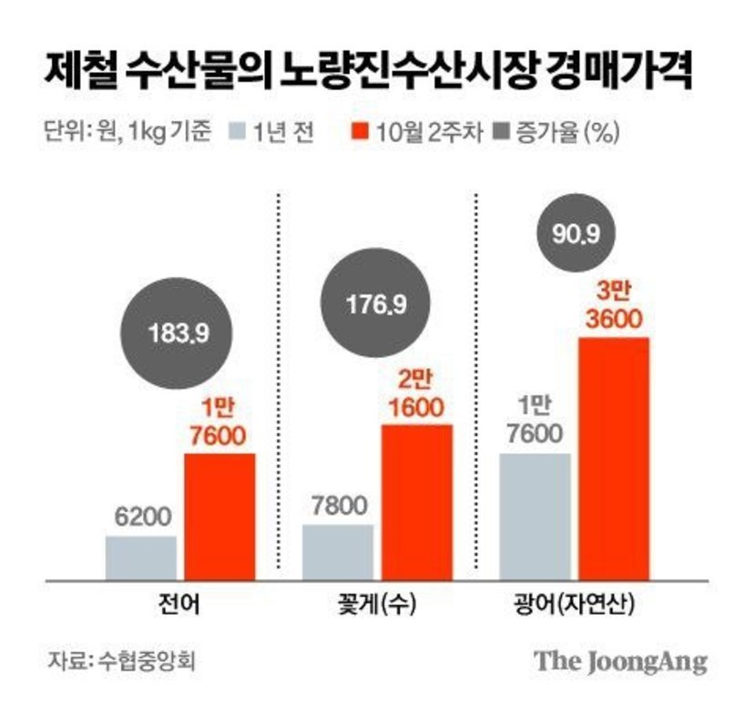 제철 해산물도 먹기 힘들지도..