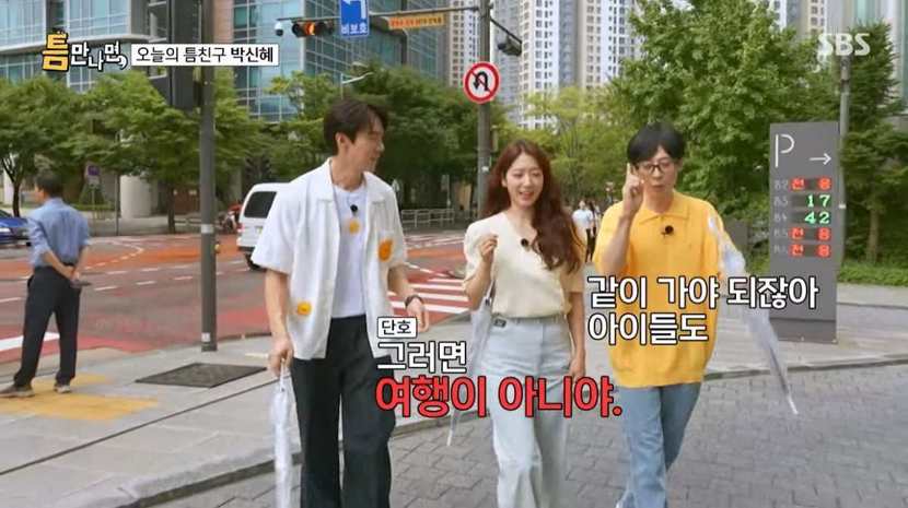 유연석은 "부부가 함께 다녀오면 되지 않냐"고 물었지만, 박신혜와 유재석은 동시에 "그럼 아이는 누가 보냐"고 답하며 웃음을 자아냈다. 박신혜는 "아이가 함께 가면 그건 여행이 아니다. 짐 챙기는 것만으로도 힘들다"고 덧붙였다.
