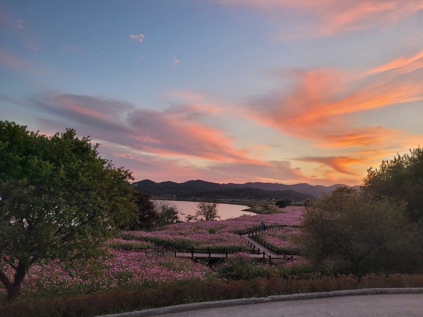 코스모스밭 노을!^^