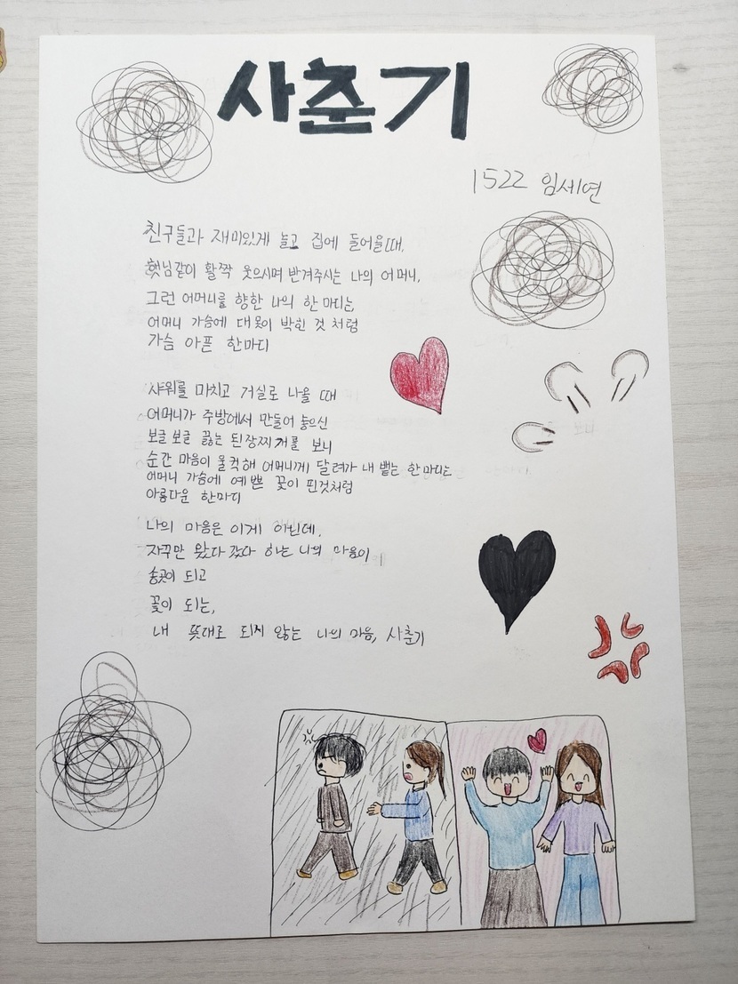 중학생 1학년 딸이 쓴 시.