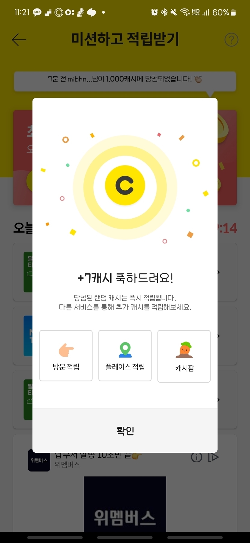 오늘의 캐시