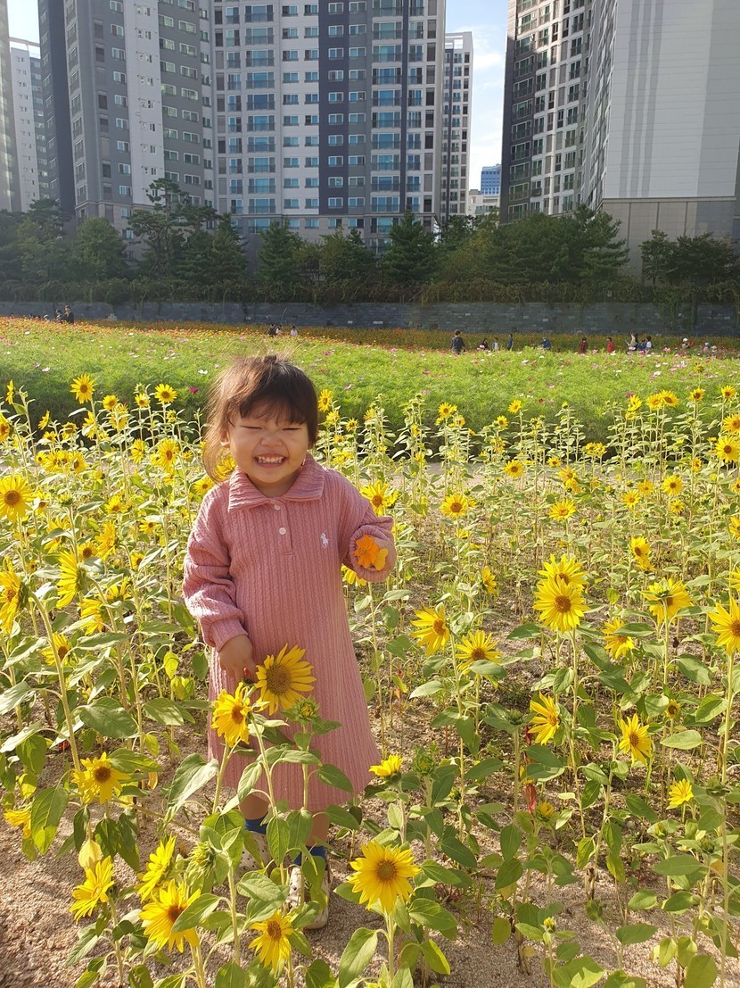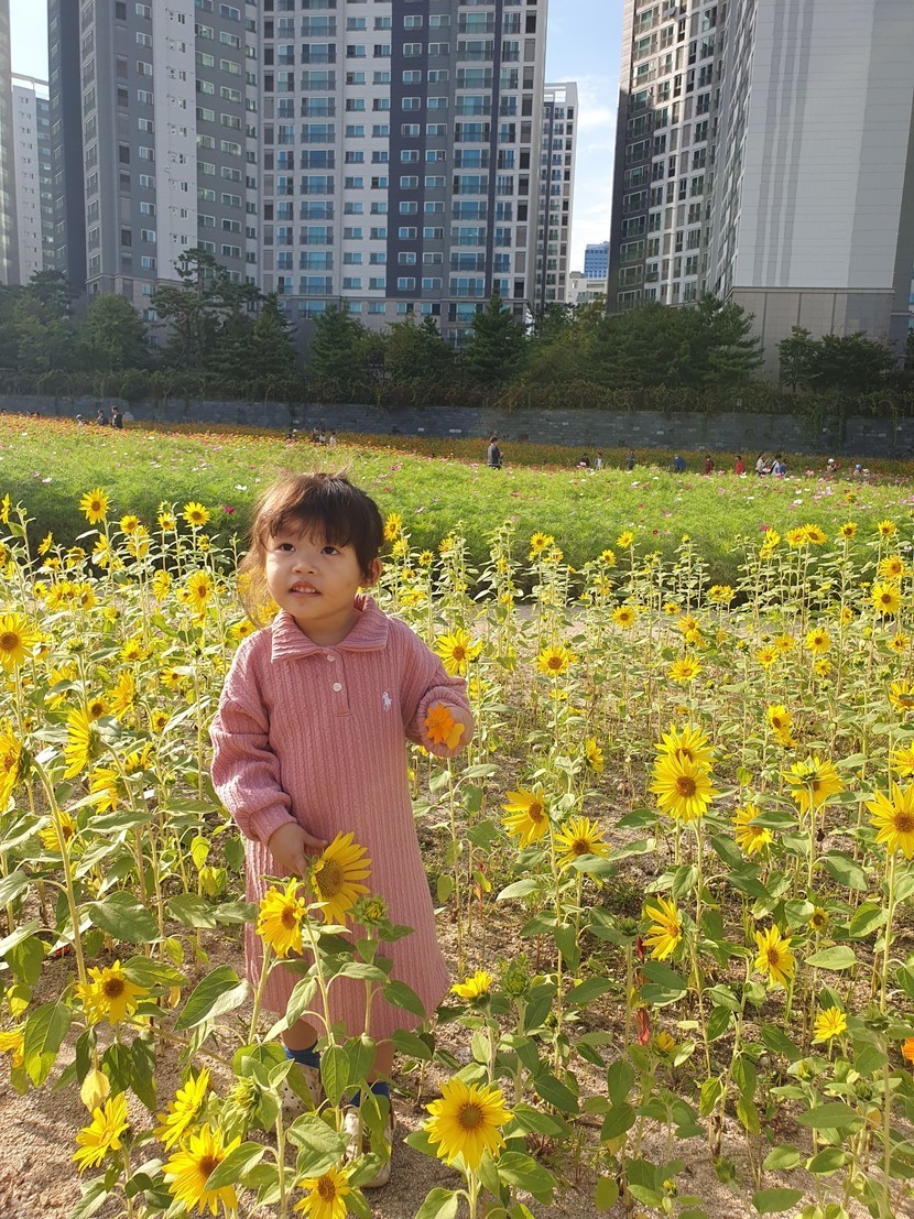 가을예쁘 손 녀와 꽃