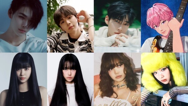 사진=엔하이픈 니키(빌리프랩), 라이즈 쇼타로(SM엔터테인먼트), 제로베이스원 성한빈(웨이크원), 플레이브 밤비(VLAST), 베이비몬스터 루카(YG엔터테인먼트), 미야오 수인(더블랙레이블), 이즈나 코코(웨이크원), 블랙핑크 리사(YG엔터테인먼트)