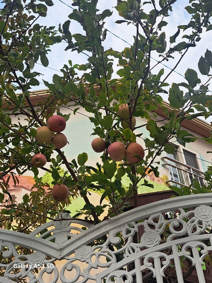 유치원담에서 사과나무에 사과가 달렸네요