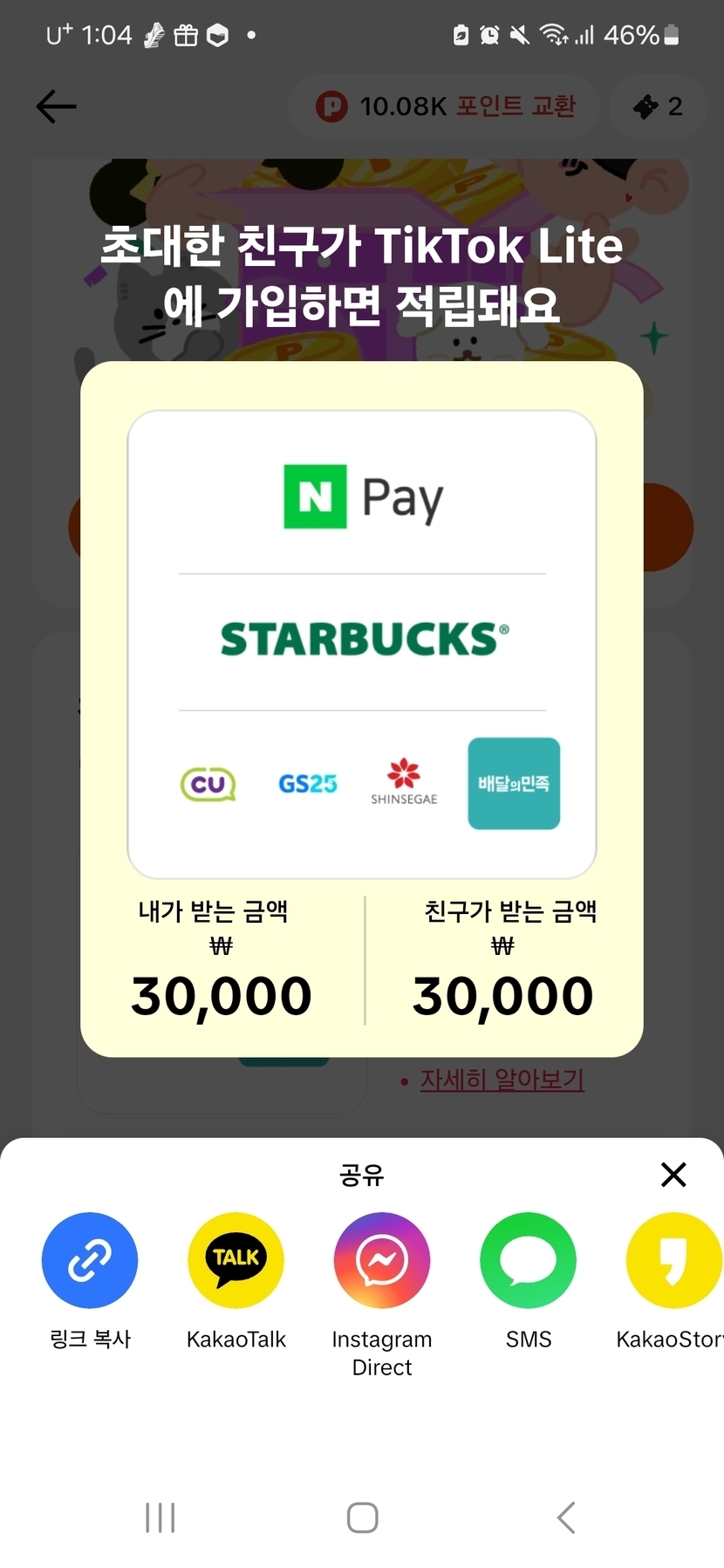 24.11.13 147 읽음 틱톡 함께해요~~♡♡ 소소한행복 구독하기 13 12 콘텐츠의 수익 4 [기간 한정] 보는 재미로, 버는 재미로! 영상만 봐도, 좋아요만 눌러도, 검색만 해도, 포인트가 차곡차곡 쌓이는 TikTok Lite! 지금 가입하고 친구랑 함께 포인트 받으세요! https://lite.tiktok.com/t/ZSjUQphxt/1. 링크타고 가서 틱톡신규가입한다2.10 일간 출석체크한다3. 3만포인트지급됩니다 12 0 / 300 입력