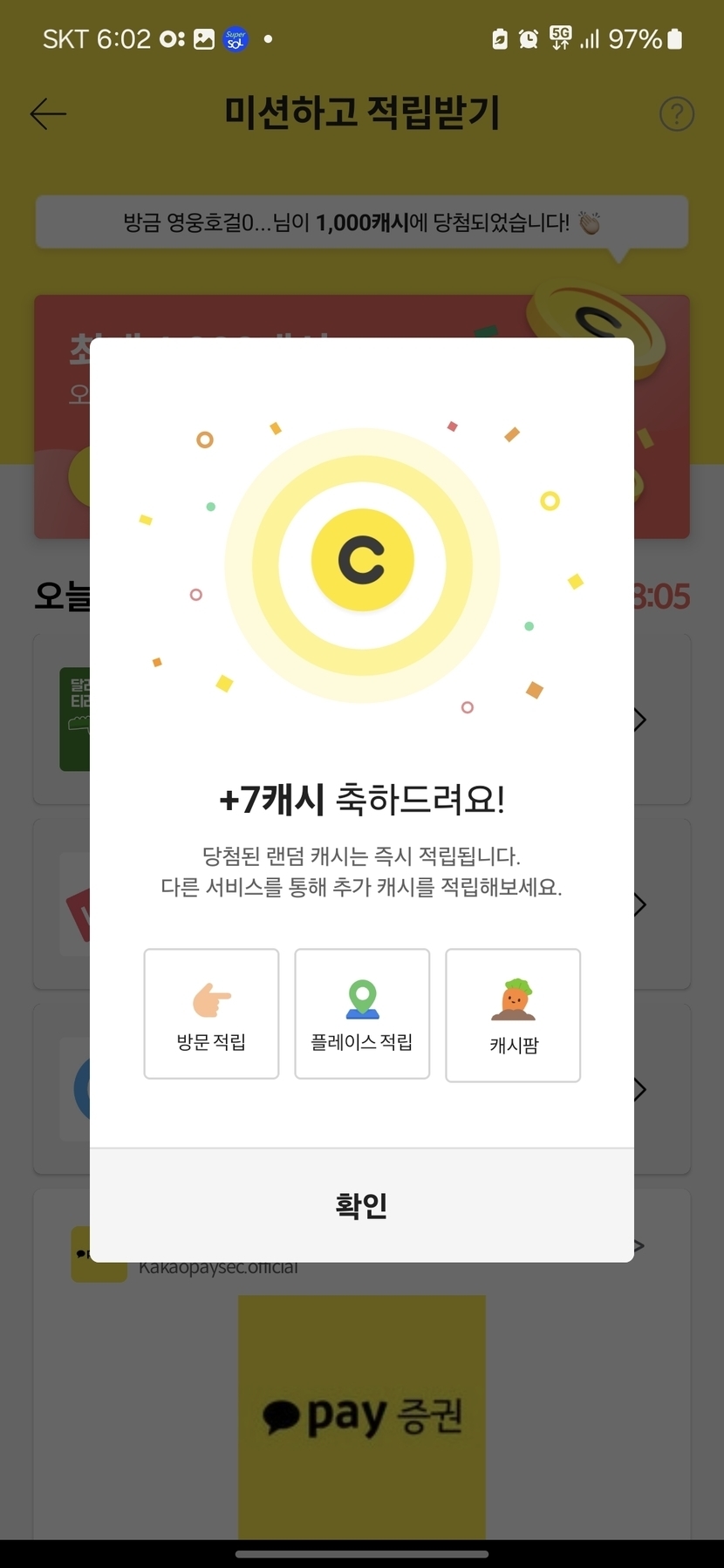 미션하고 적립팓기
