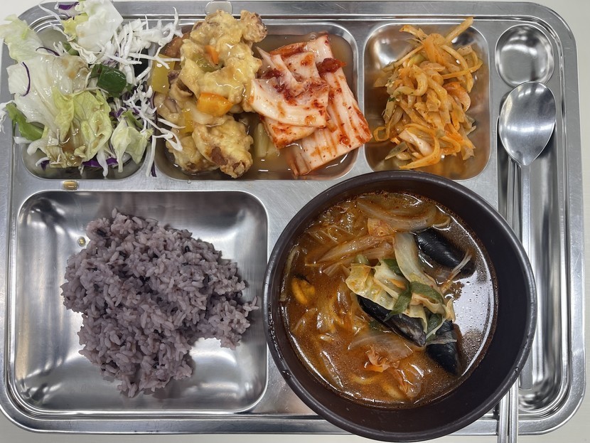 눈도오고 그래서 구내식당에서
