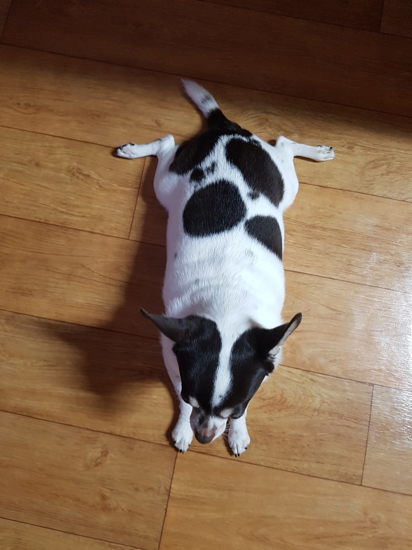 퇴근하고 손씻고 나오니 저러고 엎드려 기다리고있는 우리 레오♡♡♡