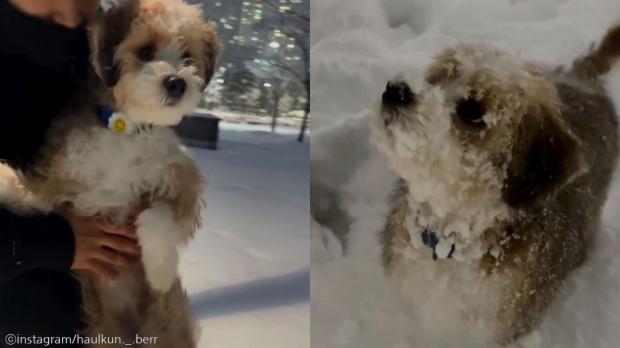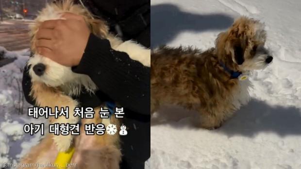 지난 27일 한 인스타그램 계정(@haulkun._.berr)에는 눈이 내리는 날 밖에 나온 강아지의 모습이 담긴 영상 한 편이 올라왔다.