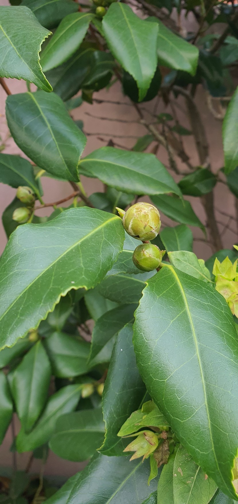 동백이 필 준비를 하고있어요 봉오리가 이뻐요