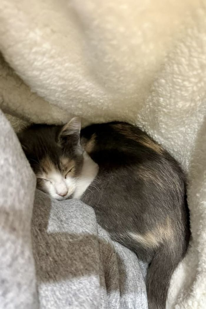 잠시후 몸이 따뜻해지자 잠이 쏟아졌는지 아기 고양이는 그대로 두 눈을 지그시 감은 채로 잠들었다고 하는데요.