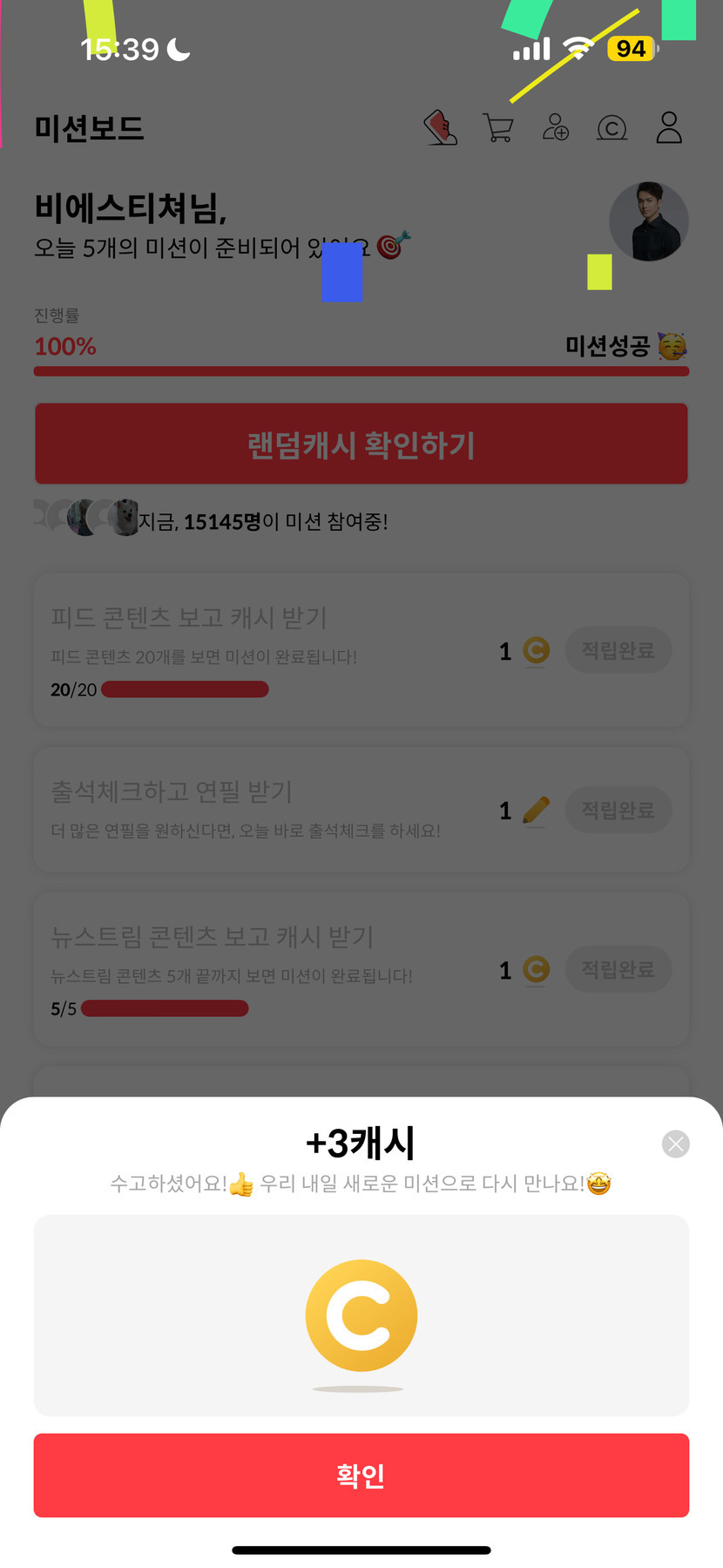 24.12.08 78 읽음 12월 8일 캐시피드 미션 완료 비에스티쳐 구독하기 11 14 콘텐츠의 수익 2 오늘은 안타깝게도 나쁜 친구 3캐시를 피하지 못했습니다.내일은 캐시 많이 받을수 있었으면 좋겠습니다.쌀쌀해진 날씨에 건강 조심하시고 해피한 휴일 오후 보내세요:) 14 0 / 300 입력