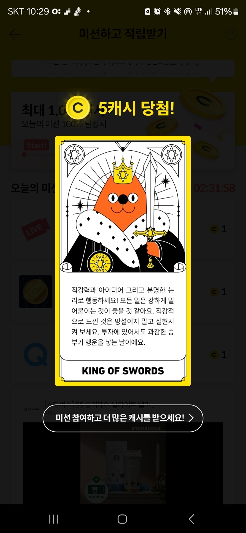 오늘 타로 5캐시! 😀😀