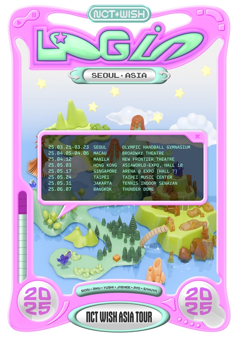 12일 NCT WISH 공식 팬클럽 커뮤니티 및 SNS 계정을 통해 '2025 NCT WISH ASIA TOUR LOG in'(2025 엔시티 위시 아시아 투어 로그 인)의 스케줄을 담은 포스터 이미지가 공개됐으며, 내년에는 더 넓은 세계 무대로 나아갈 NCT WISH의 광폭 행보를 예고했다.