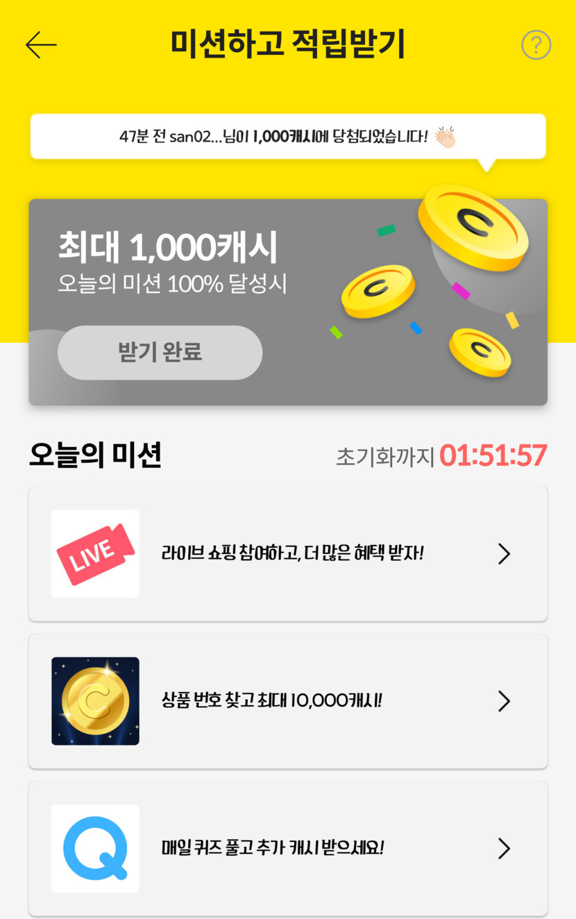 오늘의 미션 완료